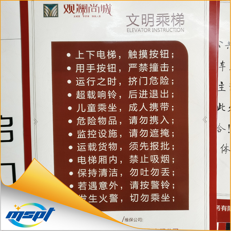 - 油墨特性:耐油污,耐刮擦,耐曬